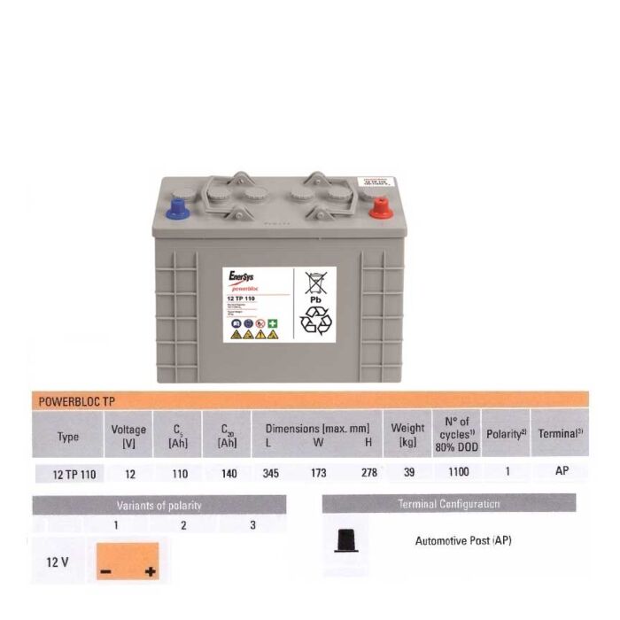 ENERSYS 12TP110 Traksjonsbatteri 12V 140AH C20 / 110AH C5(343x173x278mm)