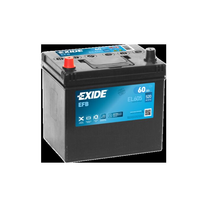 EXIDE EFB EL605 STARTBATTERI 12V 60AH (230x173x222mm) Polstilling 4 - Plusspol til venstre