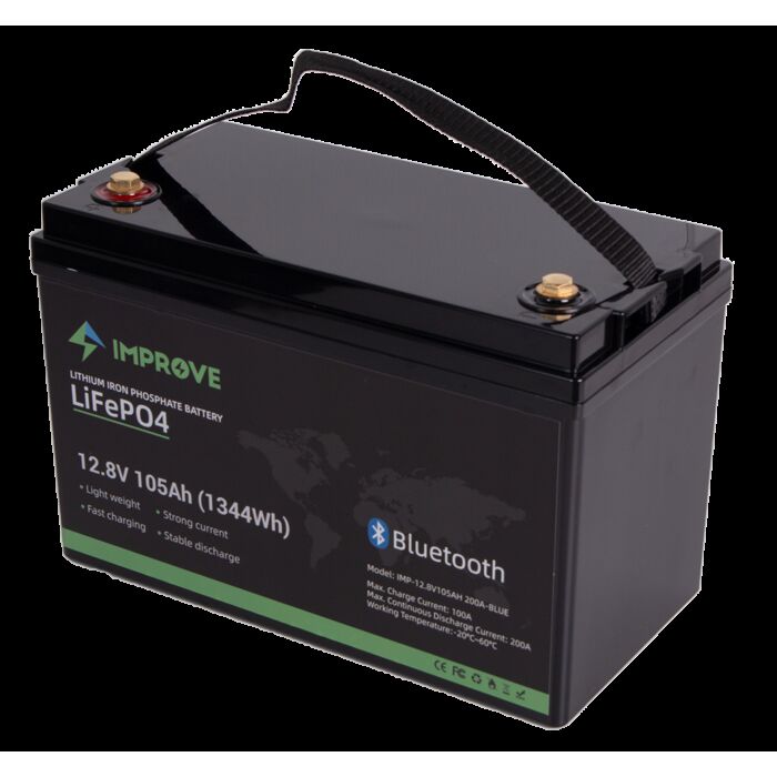 IMPROVE Lithium Batteri 12V 105Ah (LiFePO4) BMS 200A - BLUETOOTH