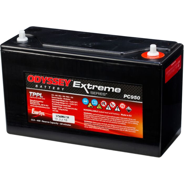 ODYSSEY PC950 AGM Batteri 12V 34AH 400CCA (250x97x156mm) Polstilling 5 - Plusspol til høyre