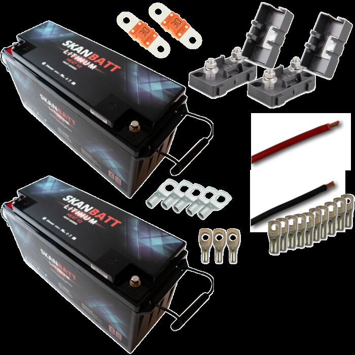 Pakke med 2 Skanbatt lithium Heat 51,2V 50Ah med 8 års garanti, kabling og sikringer