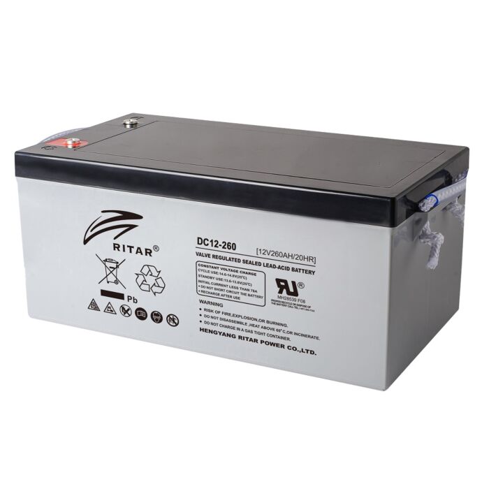RITAR AGM Deep Cycle Batteri 12V 260AH C10 (520x268x220mm) Polstilling 5 - Plusspol til høyre