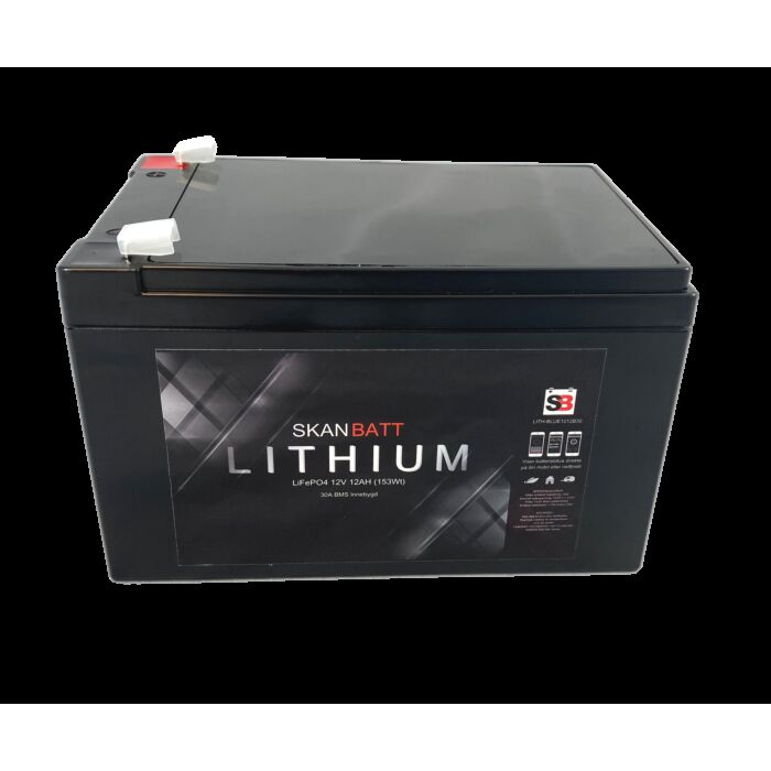 SKANBATT Bluetooth Lithium Batteri 12V 12AH 30A BMS (serie)