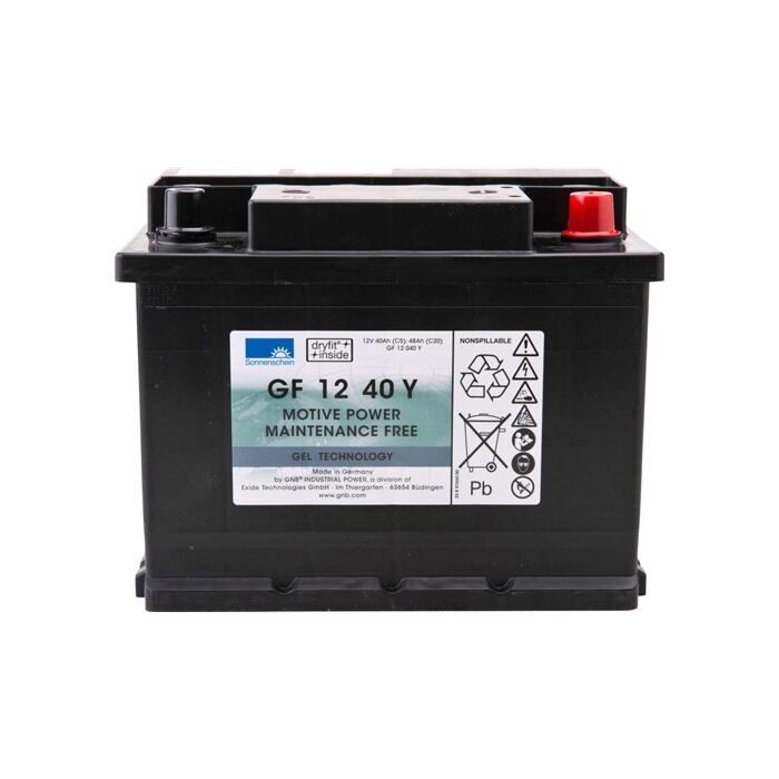 SONNENSCHEIN GEL Batteri 12V 40AH (242x175x190mm) Polstilling 5 - Plusspol til høyre