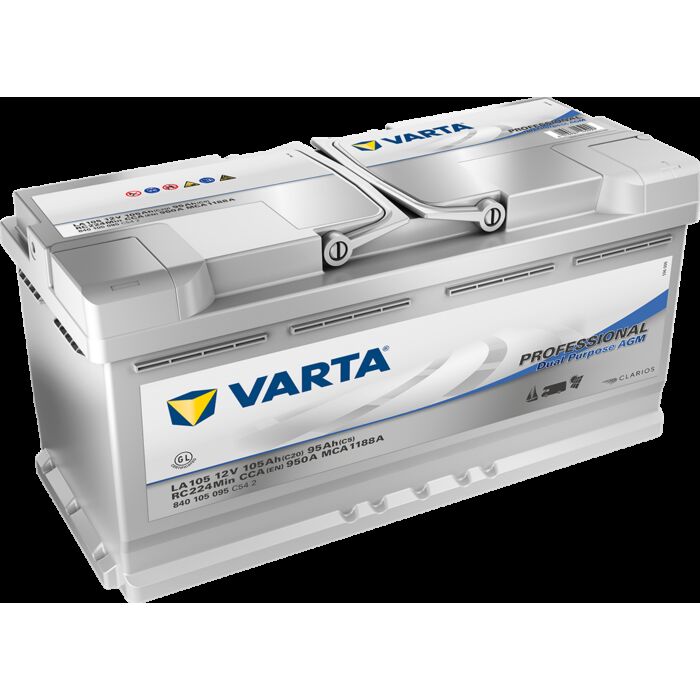 VARTA AGM Fritidsbatteri 12V 105AH 950CCA (394x175x190/190mm) Polstilling 5 - Plusspol til høyre LA105