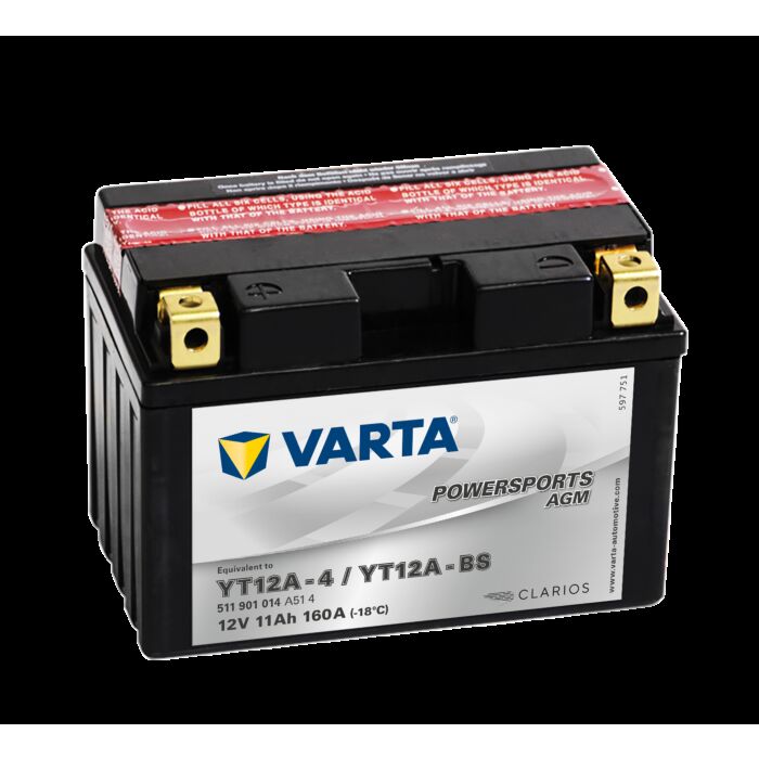 VARTA AGM MC Batteri 12V 11AH 160CCA (150x88x105mm) Polstilling 4 - Plusspol til venstre YT12A-BS