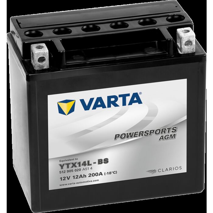 VARTA AGM MC Batteri 12V 12AH 200CCA (150x87x146mm) Polstilling 5 - Plusspol til høyre YTX14L-BS