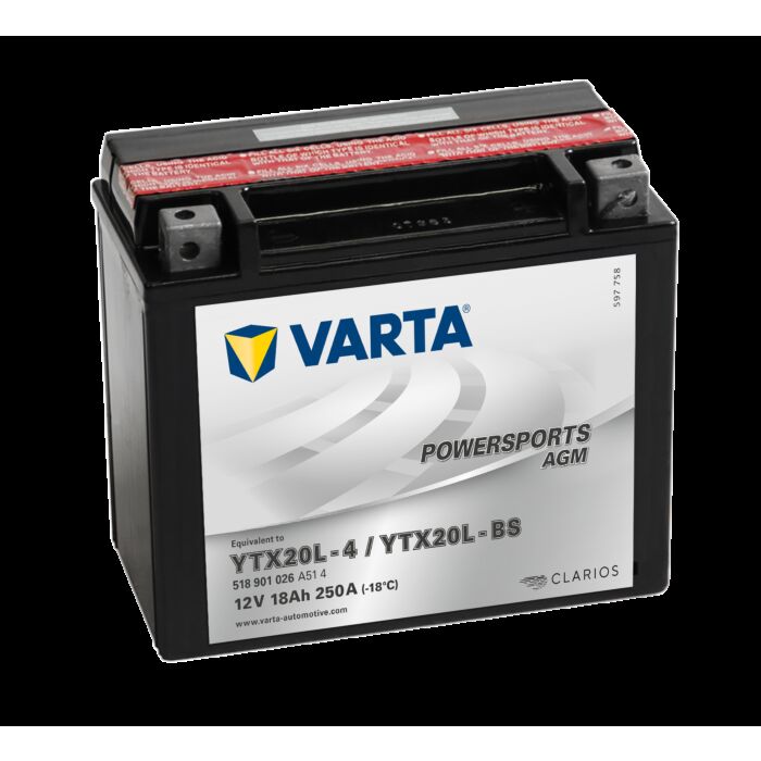 VARTA AGM MC Batteri 12V 18AH 250CCA (177x88x156mm) Polstilling 5 - Plusspol til høyre YTX20L-BS