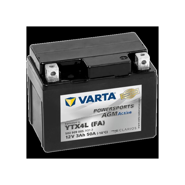 VARTA AGM MC Batteri 12V 3AH 50CCA (113x70x87mm) Polstilling 5 - Plusspol til høyre YTX4L (FA)