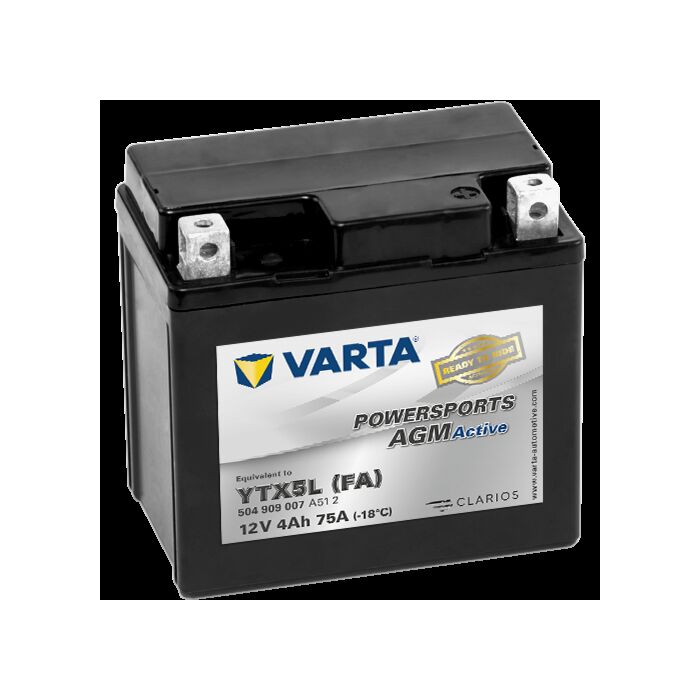 VARTA AGM MC Batteri 12V 4AH 75CCA (113x70x105mm) Polstilling 5 - Plusspol til høyre YTX5L (FA)
