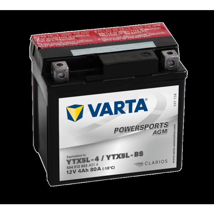 VARTA AGM MC Batteri 12V 4AH 80CCA (114x71x106mm) Polstilling 5 - Plusspol til høyre YTX5L-BS