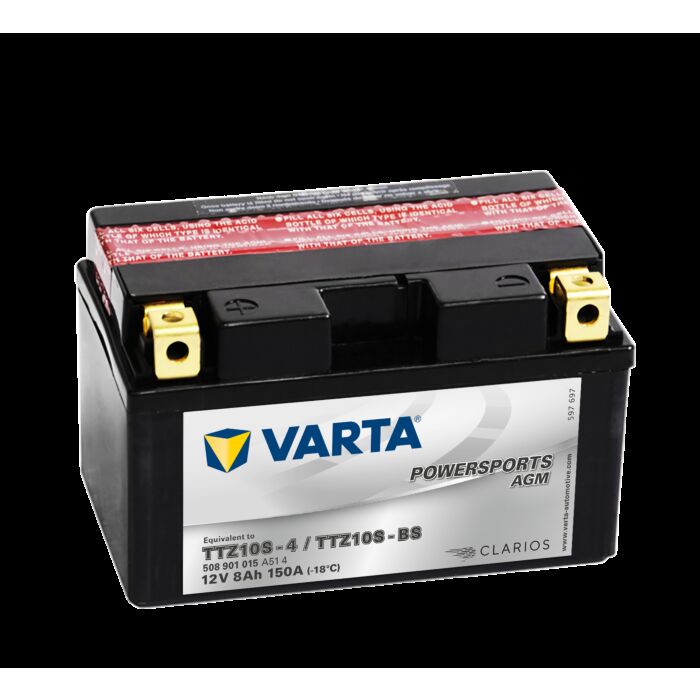 VARTA AGM MC Batteri 12V 8AH 150CCA (150x87x93mm) Polstilling 4 - Plusspol til venstre TTZ10S-BS