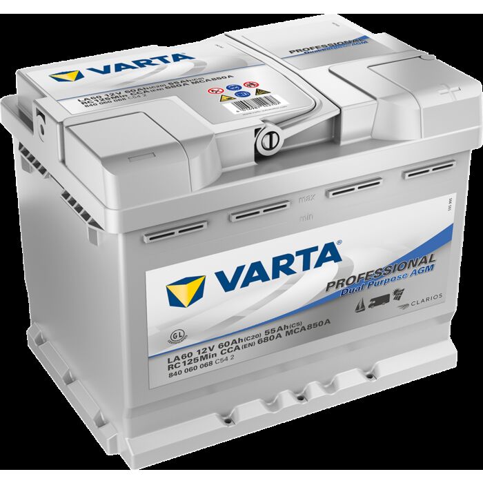 VARTA Fritidsbatteri AGM Batteri 12V 60AH 680CCA (242x175x190/190mm) Polstilling 5 - Plusspol til høyre LA60
