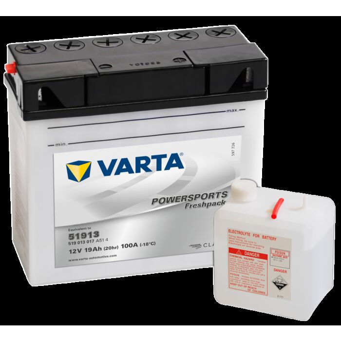VARTA MC Batteri 12V 19AH 100CCA (186x82x171mm) Polstilling 5 - Plusspol til høyre 51913