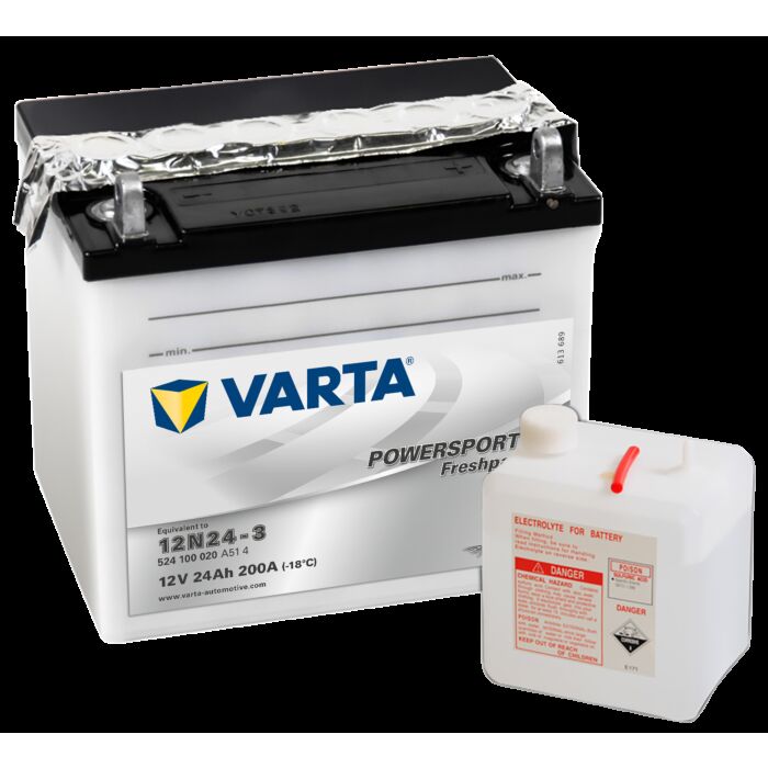 VARTA MC Batteri 12V 24AH 200CCA (186x125x178mm) Polstilling 5 - Plusspol til høyre 12N24-3