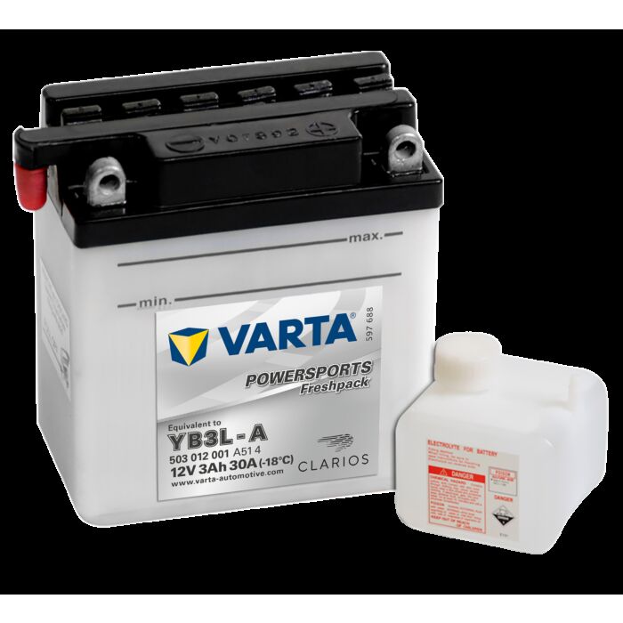 VARTA MC Batteri 12V 3AH 30CCA (100x58x112mm) Polstilling 5 - Plusspol til høyre YB3L-A