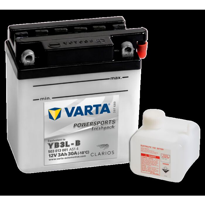 VARTA MC Batteri 12V 3AH 30CCA (100x58x112mm) Polstilling 5 - Plusspol til høyre YB3L-B