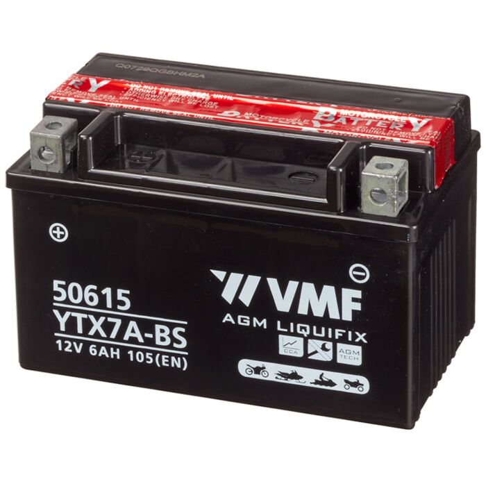 VMF MC Batteri 12V 6AH 105CCA (150x87x94) Polstilling 4 - Plusspol til venstre | YTX7A-BS