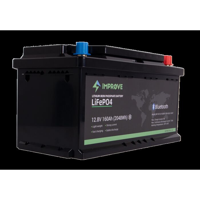 IMPROVE Lithium Batteri 12V 160Ah (LiFePO4) BMS 150A - BOBIL - HEAT - Bluetooth