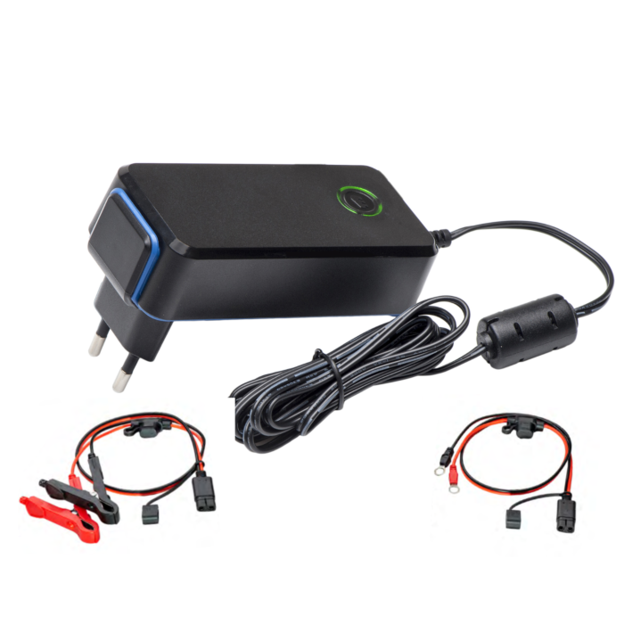 | Annen teknisk info | 3-trinns ladekontroll med timer Ladestrøm uavhengig av nettspenningsvariasjoner Polvendingssikker Lysdiodeindikator med tre farger Utskiftbare DC plugger Godkjenninger: - Medisinsk sertifisert (EN 60601) |