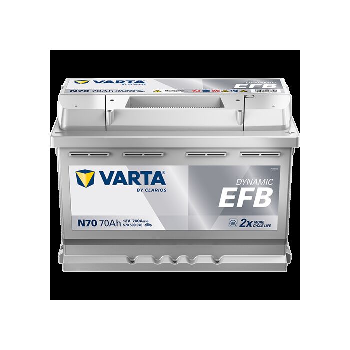 VARTA Blue Dynamic EFB Batteri 12V 70AH 760CCA (278x175x190/190mm) Polstilling 5 - Plusspol til høyre N70